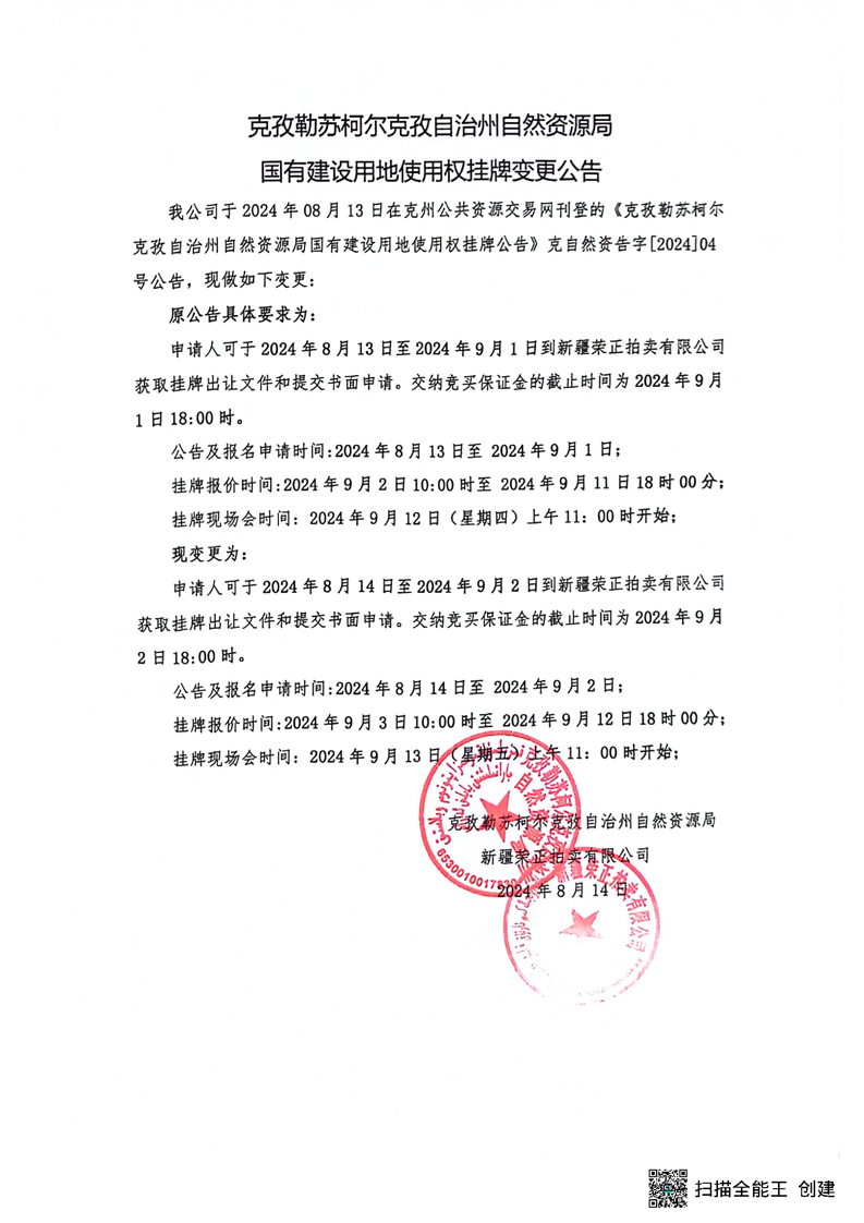 克孜勒苏柯尔克孜自治州自然资源局国有建设用地使用权挂牌变更公告