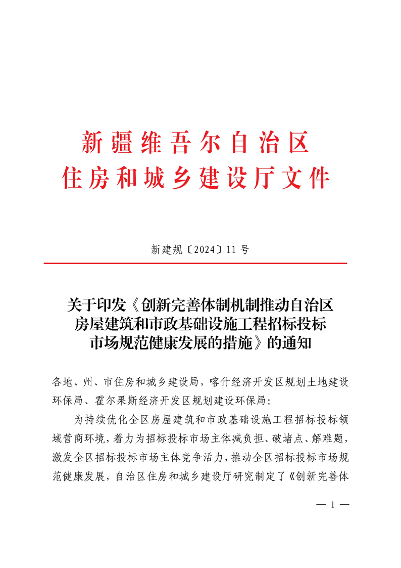 关于印发《创新完善体制机制推动自治区房屋和市政基础设施工程招标投标市场规范健康发展的措施》的通知