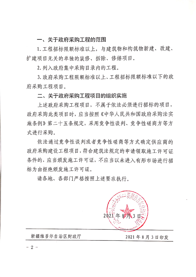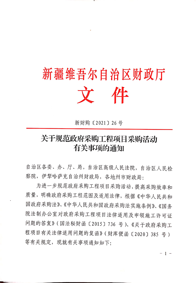 关于规范政府采购工程项目采购活动有关事项的通知(新财购【2021】26号)