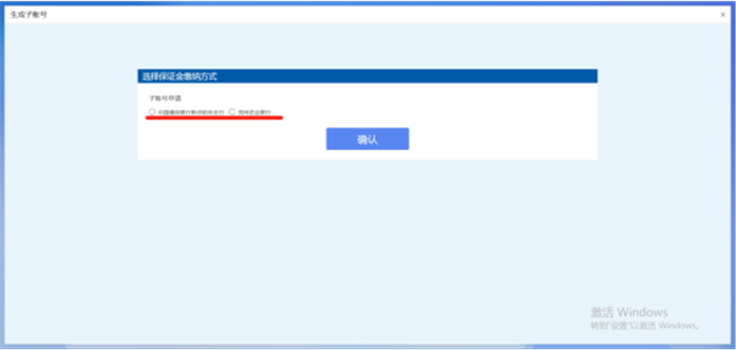 3、在生成子账号页面,选择缴纳银行,并点击【确定】按钮。如图: