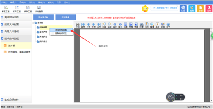 模式二:导入技术标文档后,各节点分别对应文档位置。