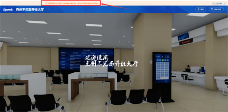方法一、请进入克州不见面开标大厅,点击页面顶部【重要通知】下载播放器。如图所示: