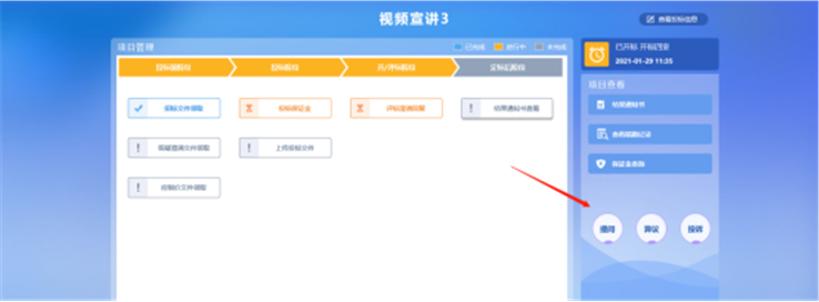 2、进入项目管理页面,点击【投标保证金】按钮。如图: