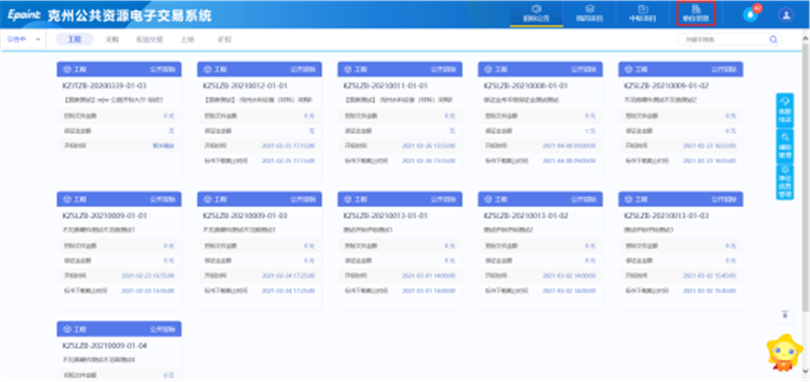 1、请登录克州电子交易平台会员端,在【我的项目】中找到对应项目,点击【项目流程】,进入项目流程页面。如图: