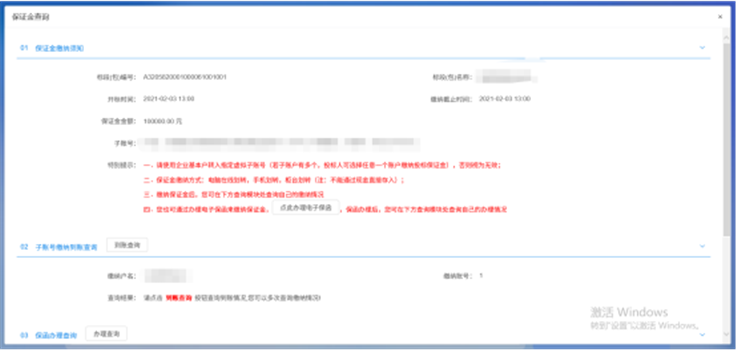 4、在保证金查询页面,即可生成子账号,按照子账号缴纳即可。如图: