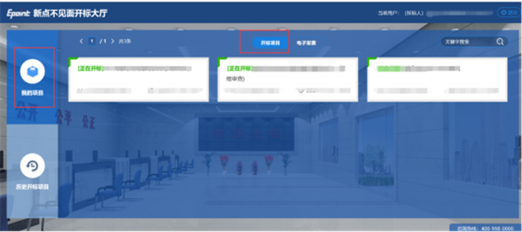 通过不见面大厅开标的项目,开标前一小时在大厅【我的项目】—【开标项目】模块中显示项目信息,如图:
